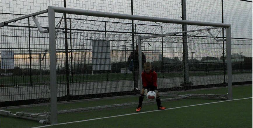 Een boogbal, geen probleem voor onze doelman